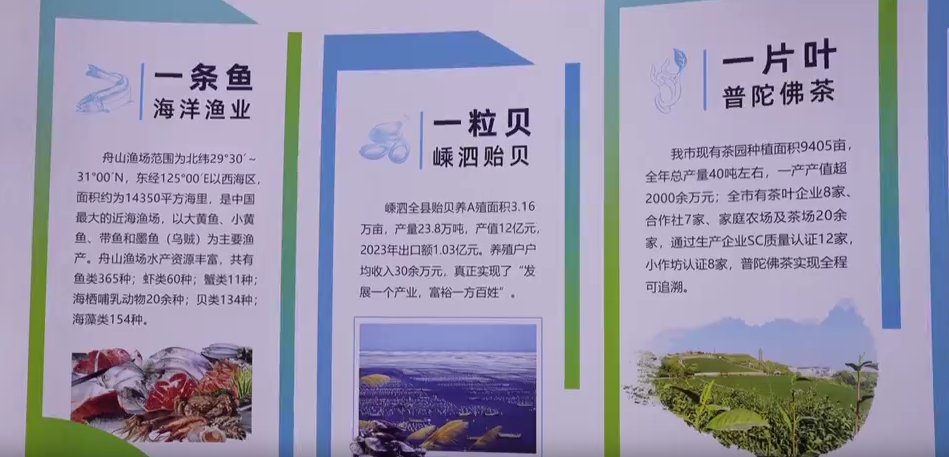 舟山展团的100平米特拆馆内,地舆标记土特产、“一条鱼”全财产链、农创客风度等板块各具特色,品牌馆则集中呈现普陀山佛茶、水仙等农文旅融合产物。